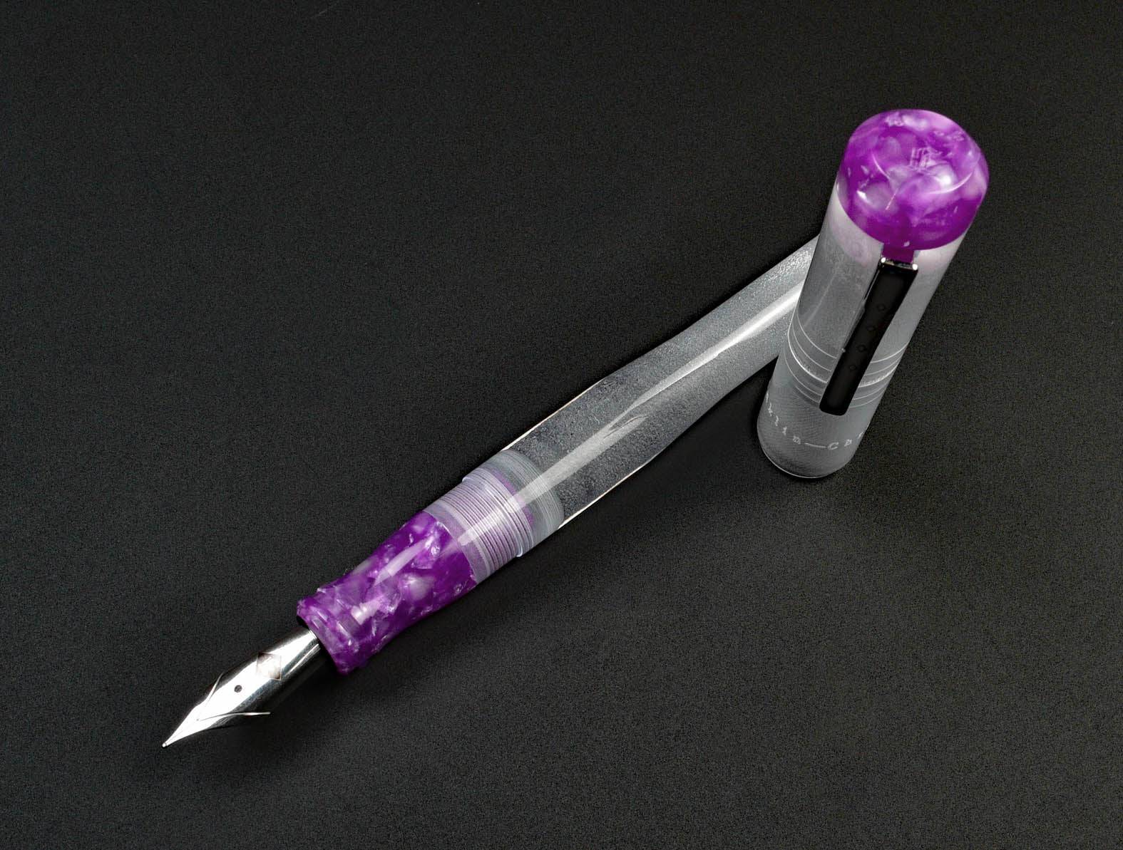 Here we used the lighter version of our pearlple acrylic, a light purple with lighter flakes in it. Combined with Ice acrylic for that see through and slushie look when you eye dropper fill the barrel. Comes with cartridges, converter, warranty, zippered pouch, etc.