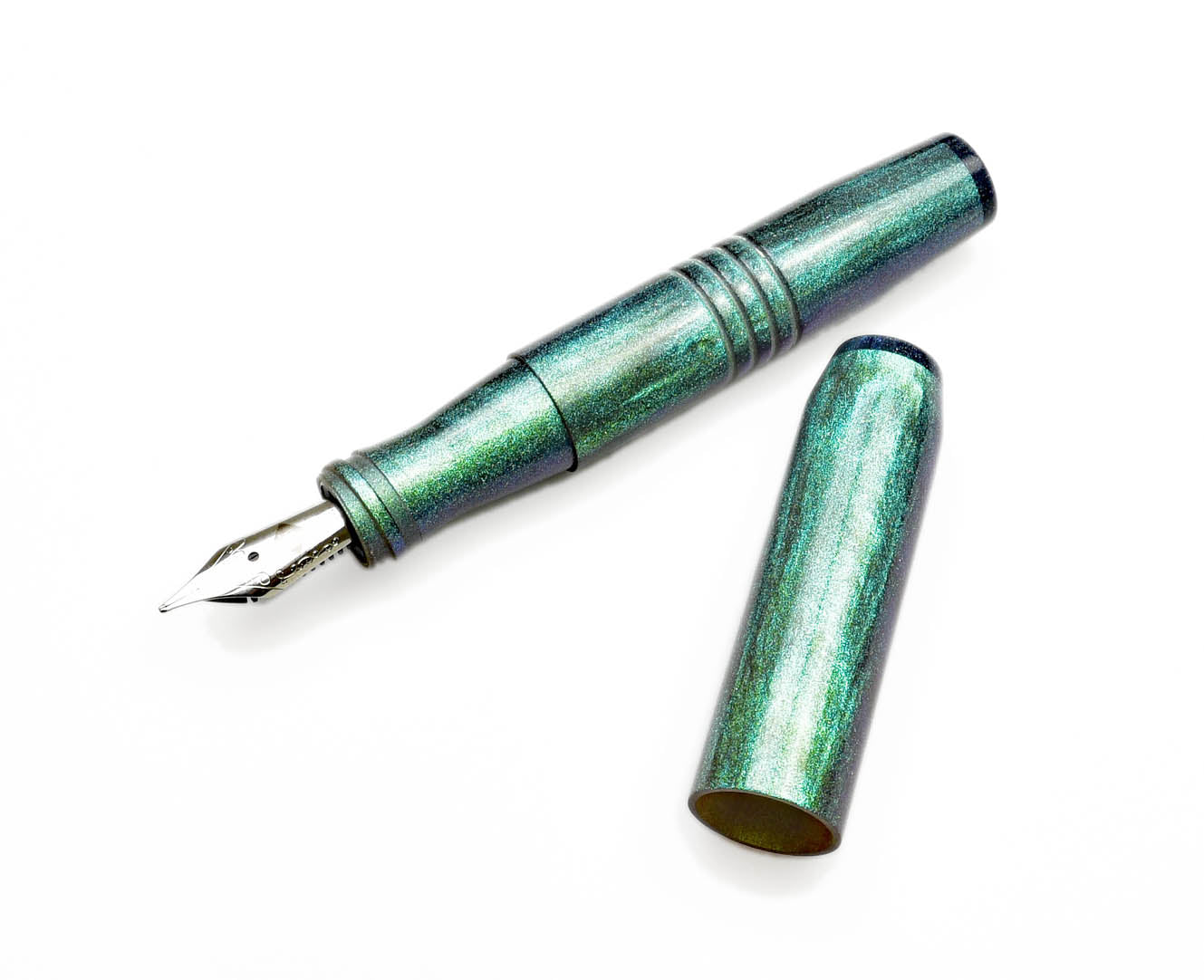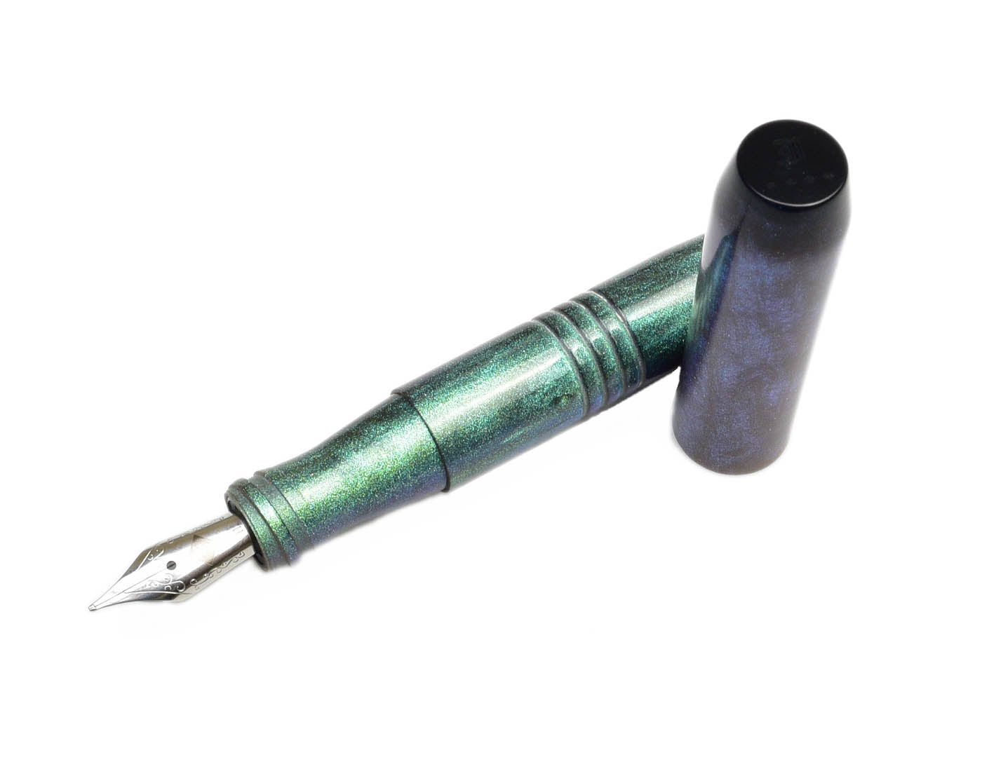 This is our little pocket 45, our newest model. We made this edition using the a special colorshift material from Diamondcast that is mostly green, then a deep blue from angles. Finished on the ends with Diamondcast Blue finials. This is a more expensive material so the price is slightly higher at $135. Limited to 20 pieces.